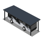 Covered 25' by 40' RV spot with 30/50amp plug and water/sewer hookups. Clearance is 12' in the rear and 12'6 in the front. Electric will be billed separately.